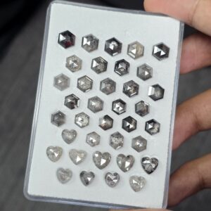 (H107F) Natural Gray Color Hexagon and Heart Shape Salt and Pepper Diamond