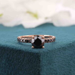 Elegant Black Diamond Ring – Rose Gold Round Cut Engagement or Promise Ring for Her