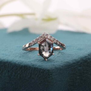 Geometric Engagement Ring – Salt and Pepper Kite Diamond in Rose Gold