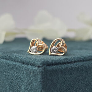 Gold Black Onyx Cluster Stud Earrings – Heart-Shaped Heart Stone Elegant Gift for Her