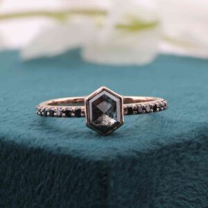 Hexagon Salt and Pepper Diamond Ring – Chevron Diamond Band in Rose Gold