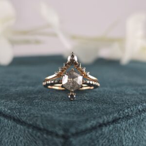 Salt and Pepper Diamond Ring Set in Rose Gold – Half-Moon & Baguette Design