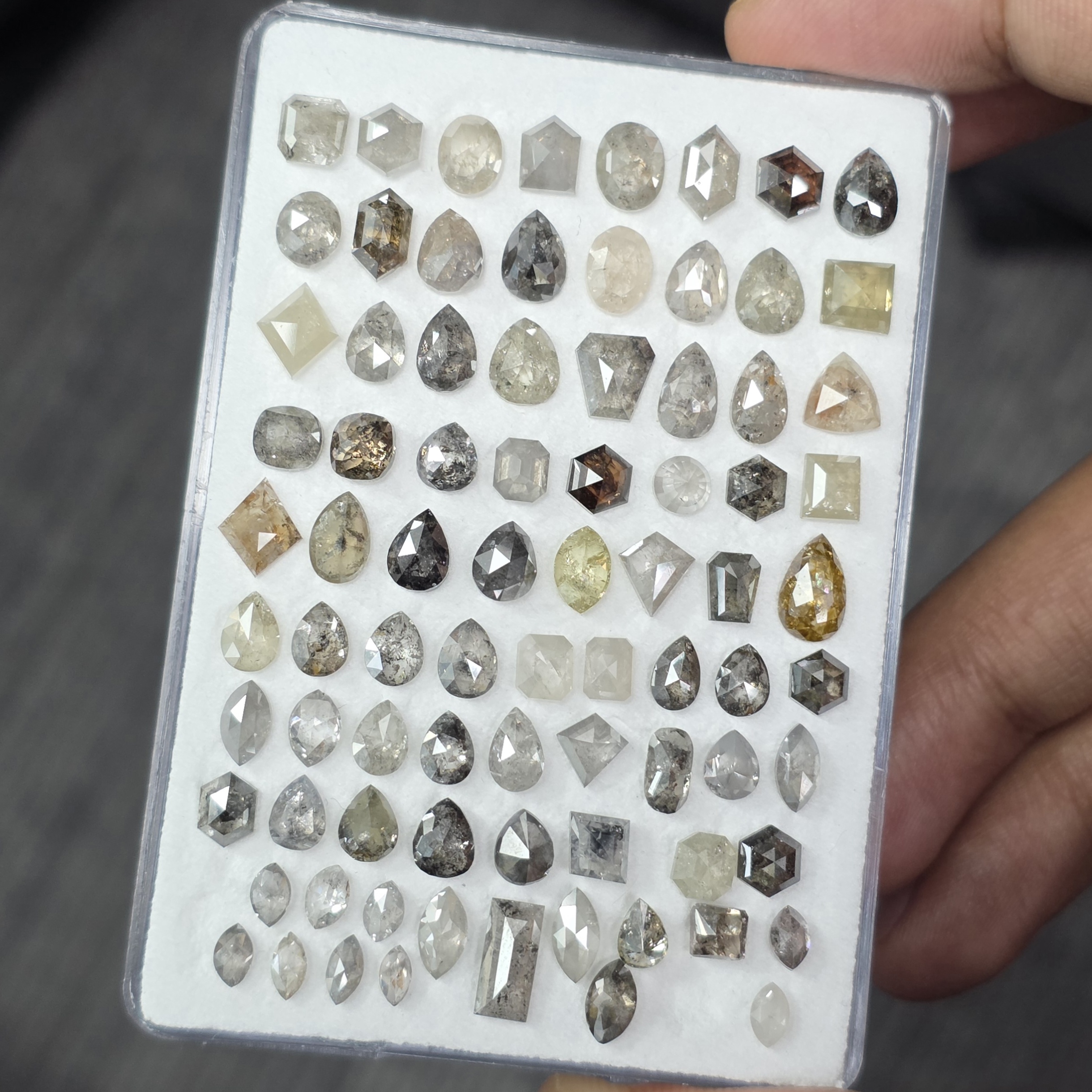 Be the first to review “(H17A) Natural Gray and mix color Unique mix Shapes Salt and Pepper Diamonds”