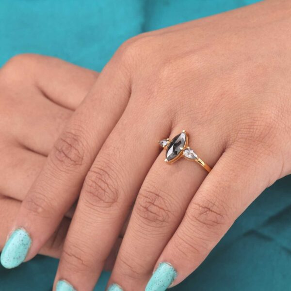 | Side Stone | Pear Cut ( Salt and Pepper Diamond ) |